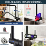 AICA Robinet de cuisine sous fenêtre mitigeur rabattable - Bec 360° rotatif + rotation globale 360°, acier inoxydable 304, finition noir mat