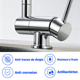 AICA Robinet de cuisine sous fenêtre mitigeur rabattable - Bec 360° rotatif + rotation globale 360°, acier inoxydable 304, finition chromé