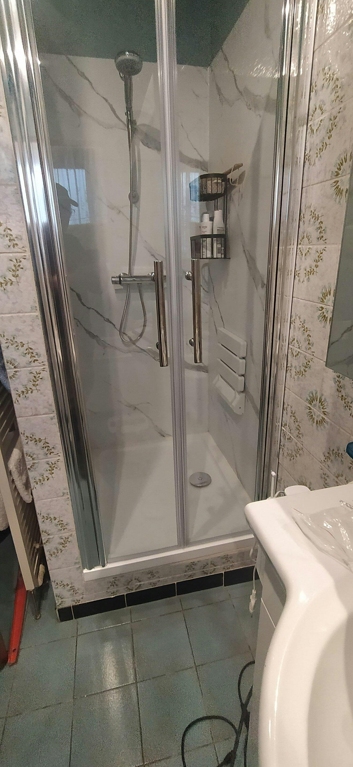Bonjour, Quelle paroi fixe de 0,80 puis-je commander (pour que ce soit le même modèle) pour faire un angle avec ces portes ? Car si je commande dans les cabines de douche, on m'a dit que vous n'aviez pas ce modèle de porte à deux battants